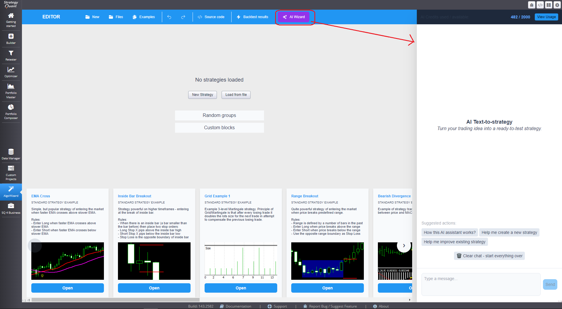 SQ AI is now available in SQX version 143 or at https://demo.strategyquant.ai/.